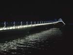整个工程采用优易全彩灯光控制系统。海上观光大桥全长395米,使用JC1主控器1个,JM—4分控器216个控制LED灯管。凤凰岛环岛周长2600米,使用JC1主控器1个,JM—4分控器130个控制LED灯板,灯板间距2米。
